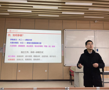 杨为中教授刚开始为同学们介绍了大学生创新创业计划,即由国家级、省级、校级发放资金,用来资助大学生开展创新创业训练。另外,学院也特设院级项目,旨在更大覆盖面地增强微密猫