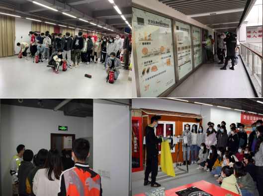 第二部分:学习灭火器和灭火毯的使用方法。教官们使用教学装置演示了灭火器和灭火毯的使用方法,掌握灭火器的正确使用技巧,总结为一“看”、二“拔”、三“瞄”、四“压”。同时,课程还模拟了实验室发生火灾情况下,集体逃生和单独逃生的情景模拟考试,让各位同学模拟发生火灾的情况下,如何逃生并帮助同学逃生。模拟现场有绿色的逃生指示标志、高度探测器(检测是否压低身体,保持低姿态逃生)、发热的门把手(此门逃生通道受阻)等,模拟了火灾现场存在的多种因素,有逃生的紧迫感。通过逃生的演练,同学们体验到了火灾逃生的情景,遇到紧急情况学会保持冷静不慌张,及时通知周围其他同学并寻找最近、最安全的通道进行有序、迅速撤离火灾现场,迅速做出正确决策,才能大大提高逃生几率。