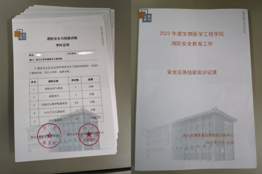 保卫处和安全应急技能训练中心送来的《消防安全与技能学时证明》和《安全应急技能实训记录》,在惊喜的同时,学院/中心以及所有参训的同学们也对灾后重建与管理学院和保卫处各级工作人员和老师们的辛勤付出表示由衷的感谢。