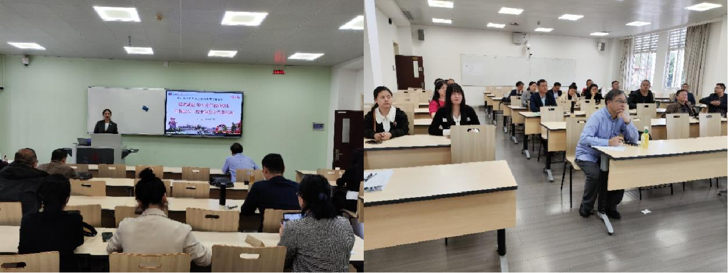 首先林江莉副院长宣讲了教学竞赛的意义。林院长从为什么开展教学竞赛、如何参与教学竞赛、教学竞赛比什么和教学竞赛的注意事项等四个方面向大家讲授了教学竞赛的要点。同时,她强调了课堂教学的创新不仅是在技术手段方面的创新,更是在教学理念、教学内容和教学方法等方面的创新。林院长还以大量的实例充分展示了教学相长的重要性,激励老师们积极用教学方式的优化呼应信息技术的进化,以启发式、互动式、探究式教学促进教育变革创新。此外,还亲自演示了一小段微课,向老师们展示教学竞赛部分比赛内容,并用自己参赛获奖的课件和脚本剖析了教学竞赛的关键点。
