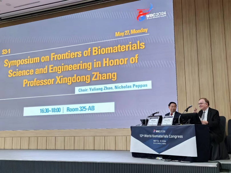 教授张兴栋对生物材料科学与工程和促进世界生物材料发展做出的卓越贡献。报告会由美国工程院、医学院院士Nicholas Peppas教授和中国科学院院士,中国生物材料学会理事长赵宇亮教授任主席。