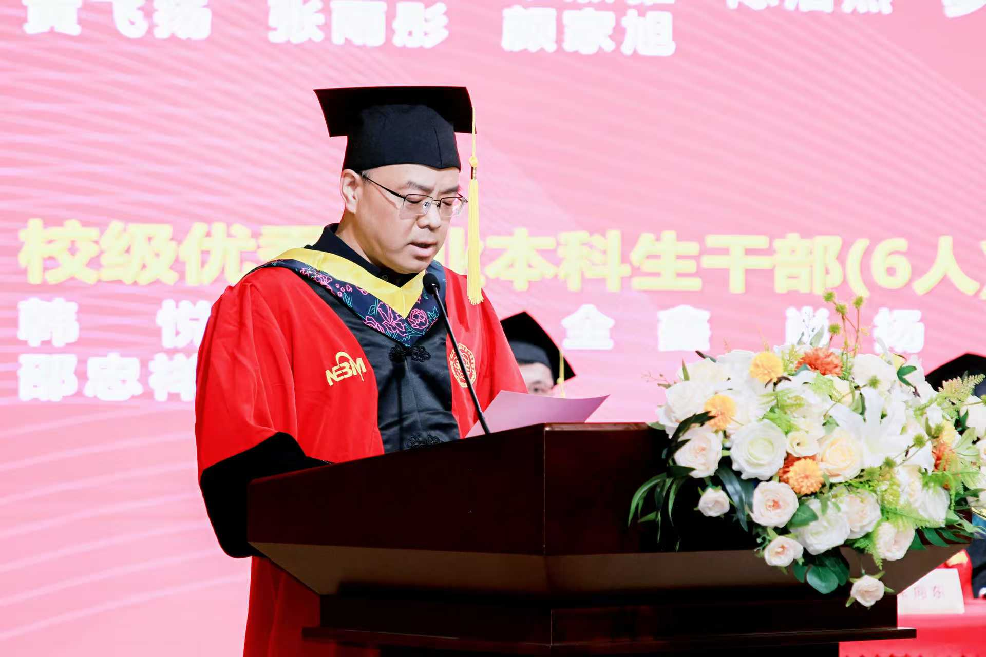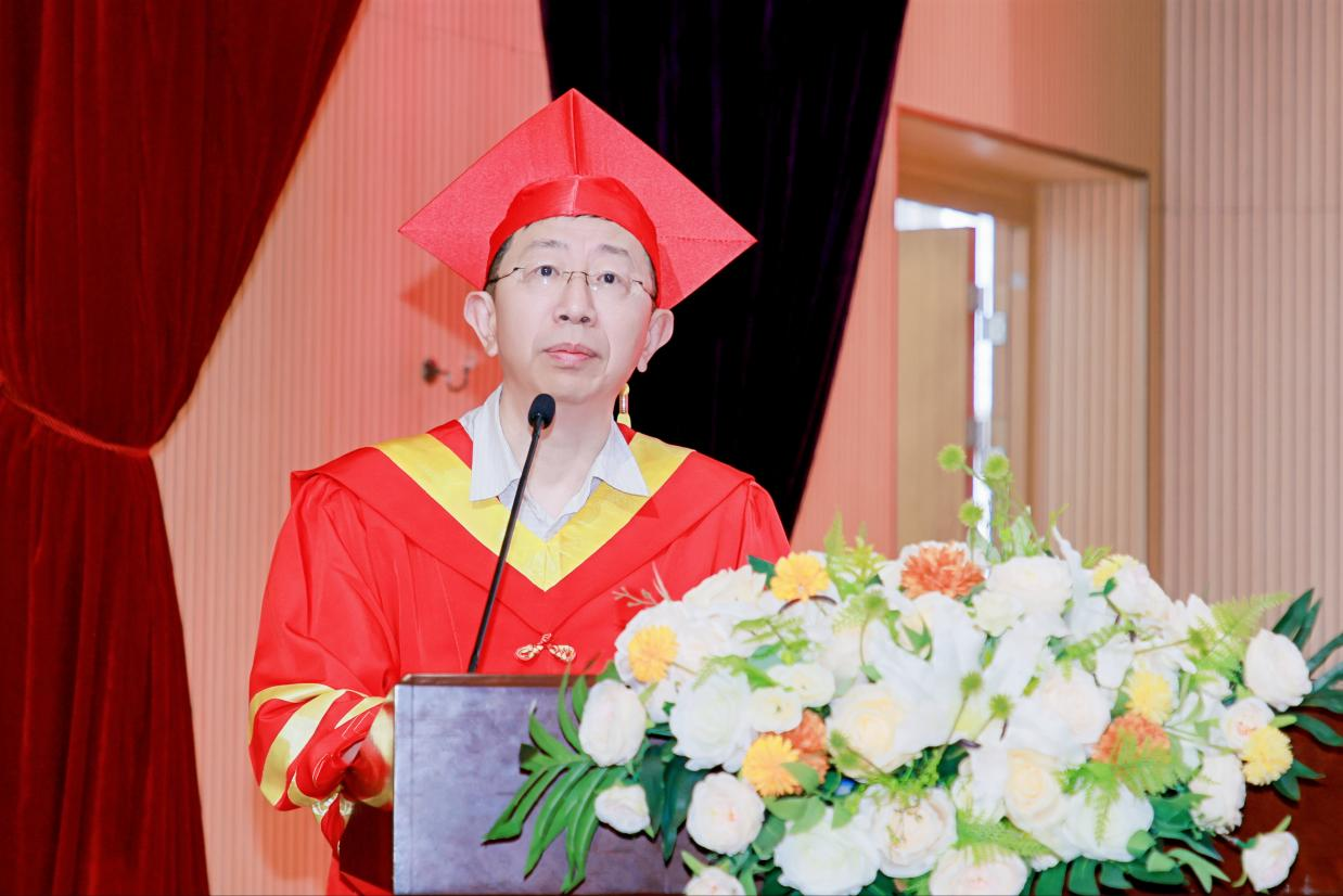 张兴栋为同学们送上毕业寄语。他简要回顾了学院近年来在生物医学工程领域取得的突破性成就,勉励同学们以川大为荣、以生医为荣。张兴栋指出,人生的成功需要把握两个关键要素:机遇与勤奋,希望同学们倍加珍惜时代机遇,始终保持坚韧不拔的意志品质,以持之以恒的奋斗精神直面困难、破解难题,实现人生价值。张兴栋最后郑重承诺,不论同学们未来在何方发展,学院始终是大家最坚强的后盾,期待同学们成长为终身学习的践行者,在服务国家战略需求中书写人生华章。