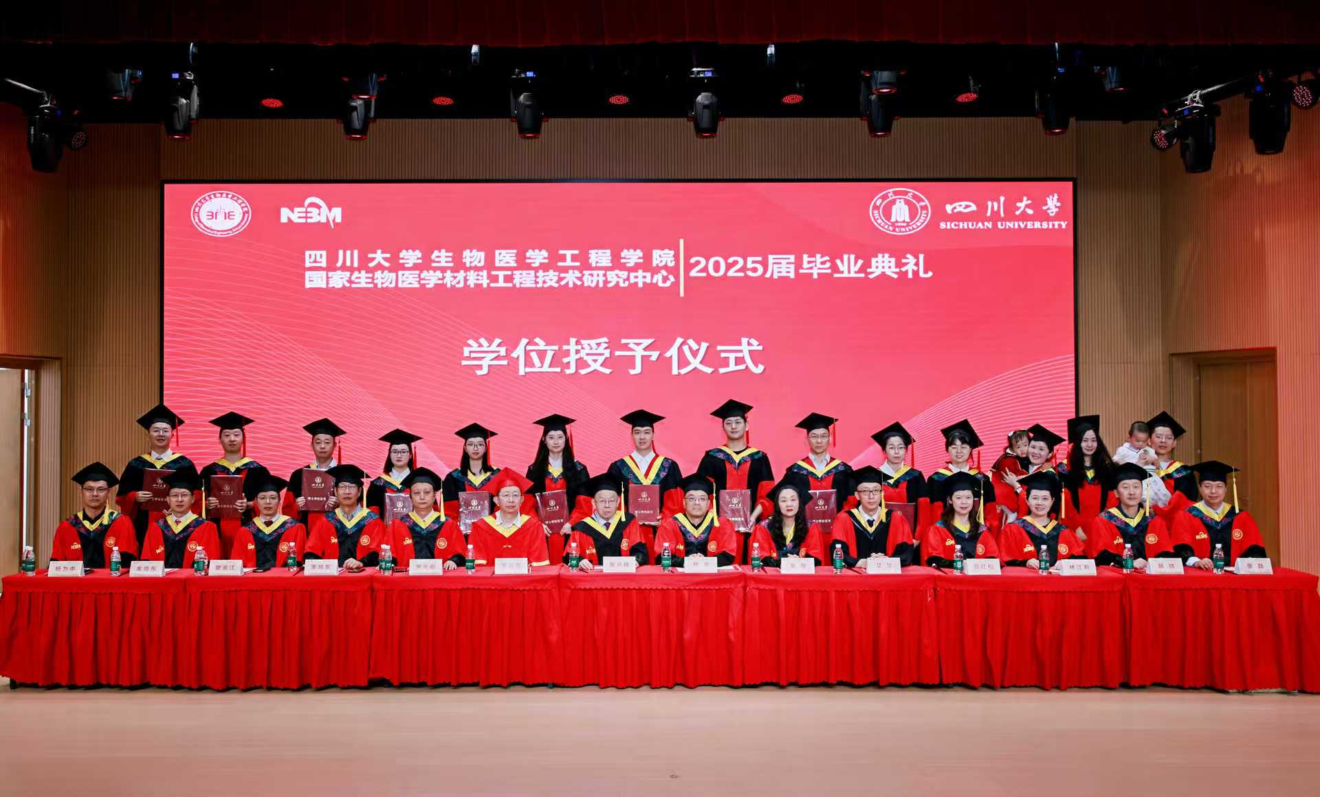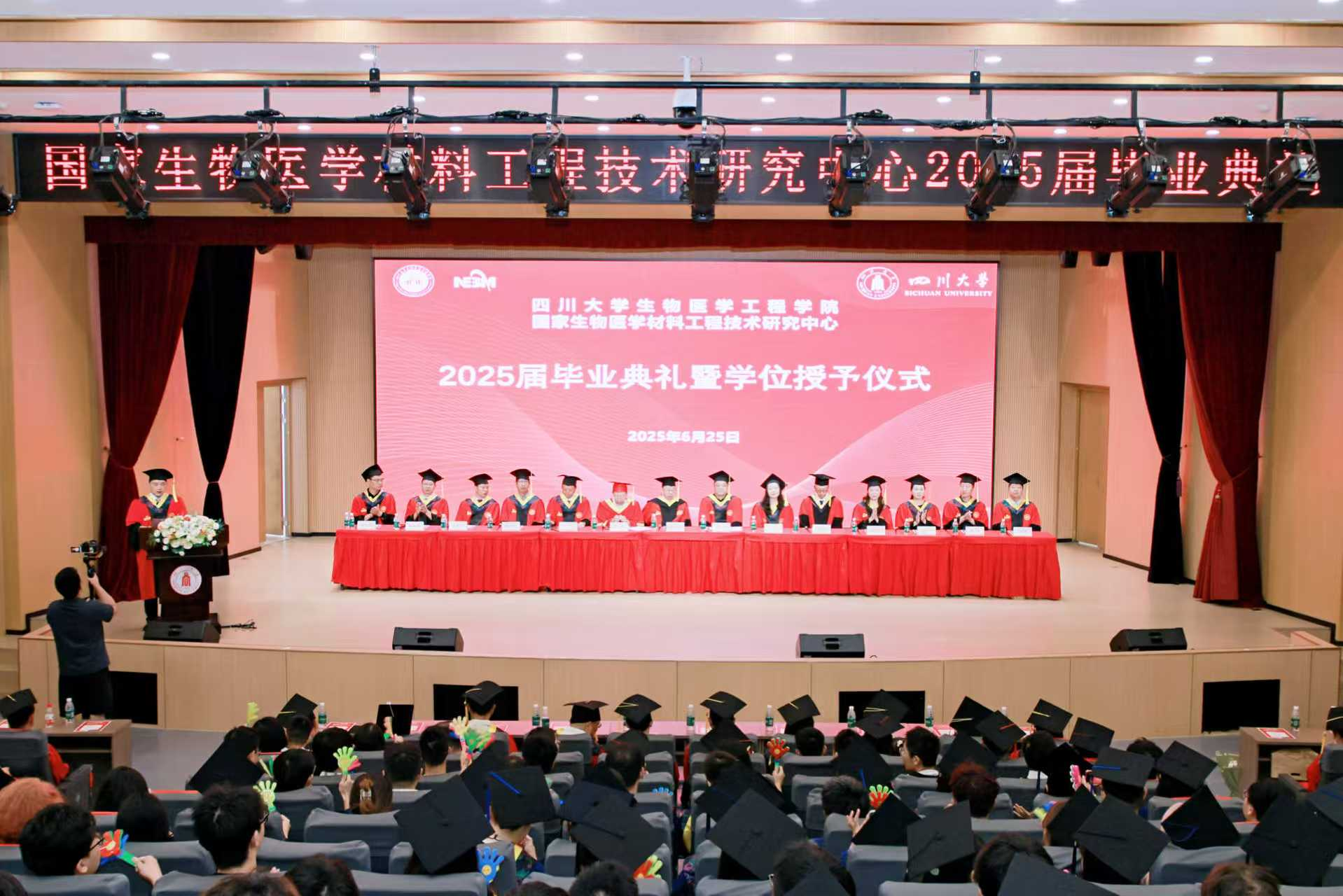 /国家生物医学材料工程技术研究中心2025届毕业典礼暨学位授予仪式在望江校区文华活动中心举行。2025届全体毕业生身着学位服齐聚一堂,共襄毕业典礼这一庄重盛典。中国工程院院士张兴栋、院党委书记韩宇、院长/国家生物材料中心主任王云兵、副院长林江莉,学院/中心研究生导师代表、辅导员老师和毕业生家长参加了典礼。典礼由院党委副书记田单主持。