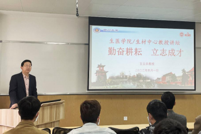/国家生物医学材料工程技术研究中心“教授讲坛”活动在生物材料楼606报告厅成功举办。学院院长/国家中心主任王云兵教授为前来听讲的近百名学生授课,由自身经历出发,以“勤奋耕耘、立志成才”为主题,与同学们就学习生活、科研工作、专业发展与使命担当等方面展开了亲切而深刻的讨论。