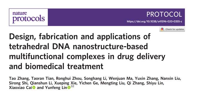 的林云锋教授团队,在国际前沿期刊《Nature Protocols》上发表了题为“Design, fabrication and applications of tetrahedral DNA nanostructure-based multifunctional complexes in drug delivery and biomedical treatment”的论文。微密猫