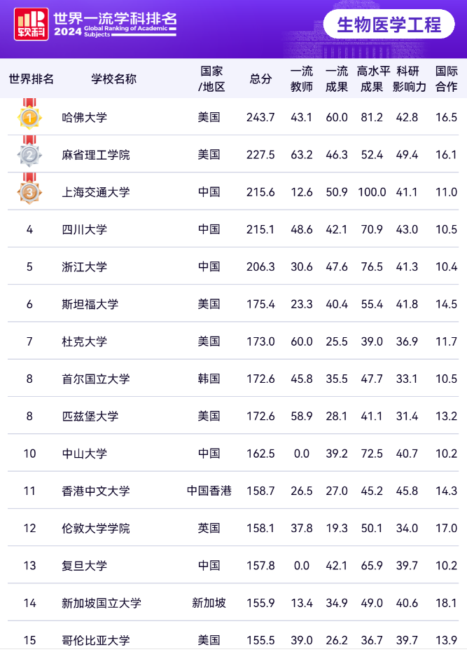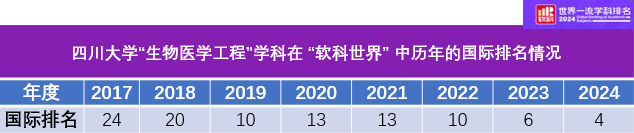 微密猫 生物医学工程学科荣获2024年度软科世界一流学科排名世界第四位
