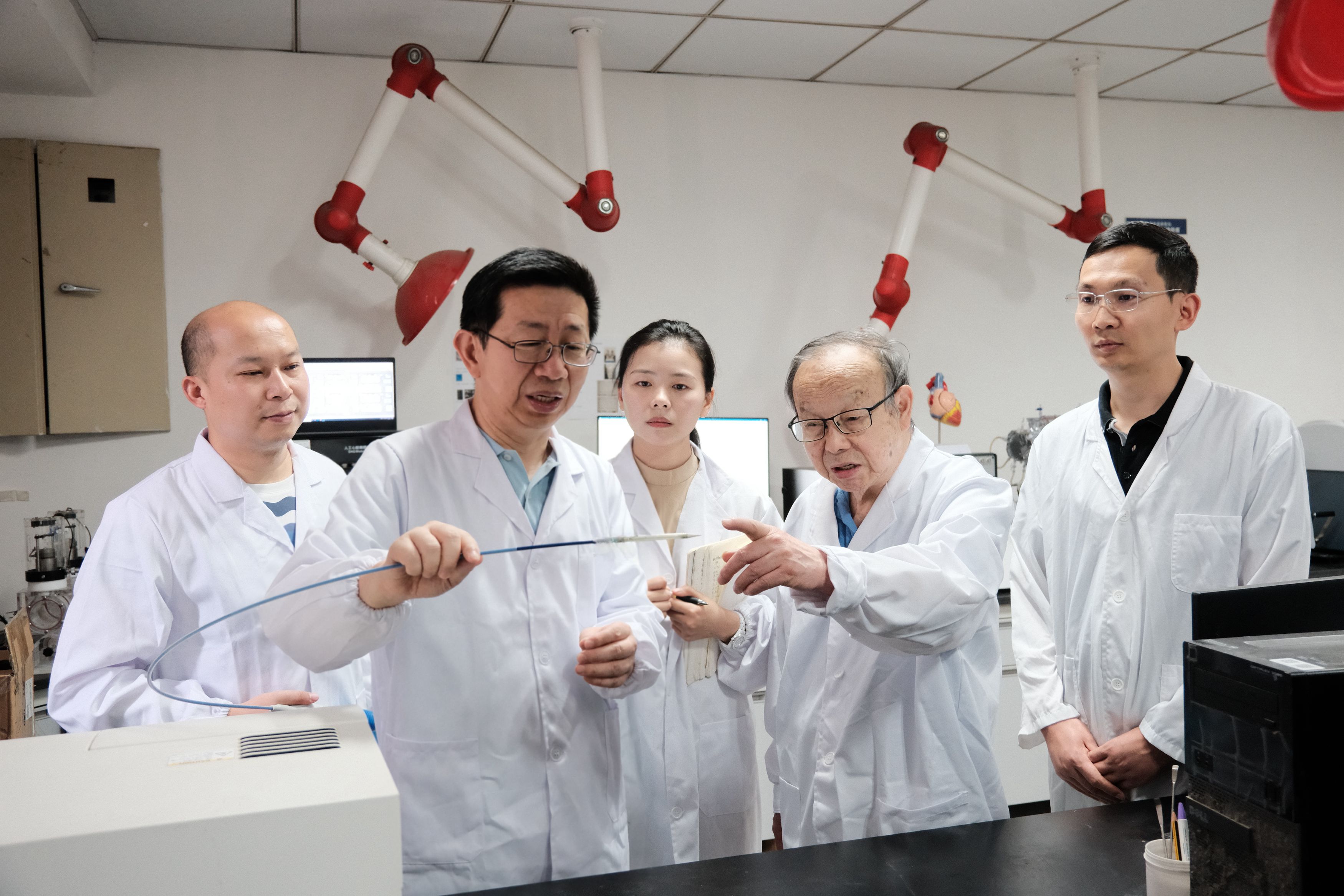 王云兵教授团队和阜外医院潘湘斌教授团队联合上海形状记忆合金材料有限公司,在张兴栋院士组织诱导性生物材料理论指导下,产学研医协同攻关,突破了可降解高分子材料力学性能、降解速率与组织修复进程难以良好匹配,以及封堵器植入后难以像镍钛合金封堵器一样与卵圆孔解剖结构紧密贴合、易导致残余分流等关键难题,研发出全球首个获批上市的心源性卒中防治生物可降解卵圆孔封堵器(国械注准20233131307),为中国乃至全球卵圆孔未闭患者提供了全新的治疗方案。