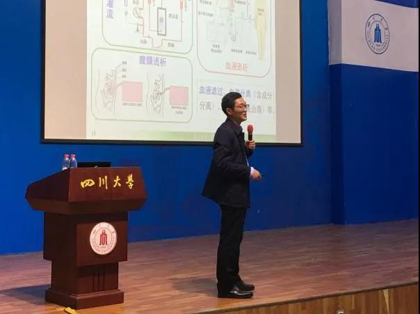 回顾历史,以史为鉴,关照现实,展望未来。赵长生院长结合自己的科研经历,向同学们讲述了中国生物医学工程科学与技术的发展。赵院长以轻松诙谐、简单易懂的语句介绍了血液透析的原理及重要性,重点介绍了自己负责研究与监督生产的聚醚砜膜材料。二十世纪九十年代,国内血液透析器起步晚、费用高、依赖进口的问题亟待解决。赵院长及他的课题组成员自1993年起研究聚醚砜中空纤维膜,艰苦奋斗,上下求索。到2018年,我国已具备首条自主纺丝生产线,可制造兼具抗菌、抗凝、中空的生物膜材料,摆脱了知识产权受限、过分依赖进口的尴尬处境,进入自主创新的领跑阶段。提到受制于人的过去,赵院长对学生们提出了自己的期望:要始终掌握自主知识产权,保证创新研发的竞争力;努力学好每一阶段的知识,提高创新能力,才能最大化发挥生物医学工程学科的作用,造福社会。