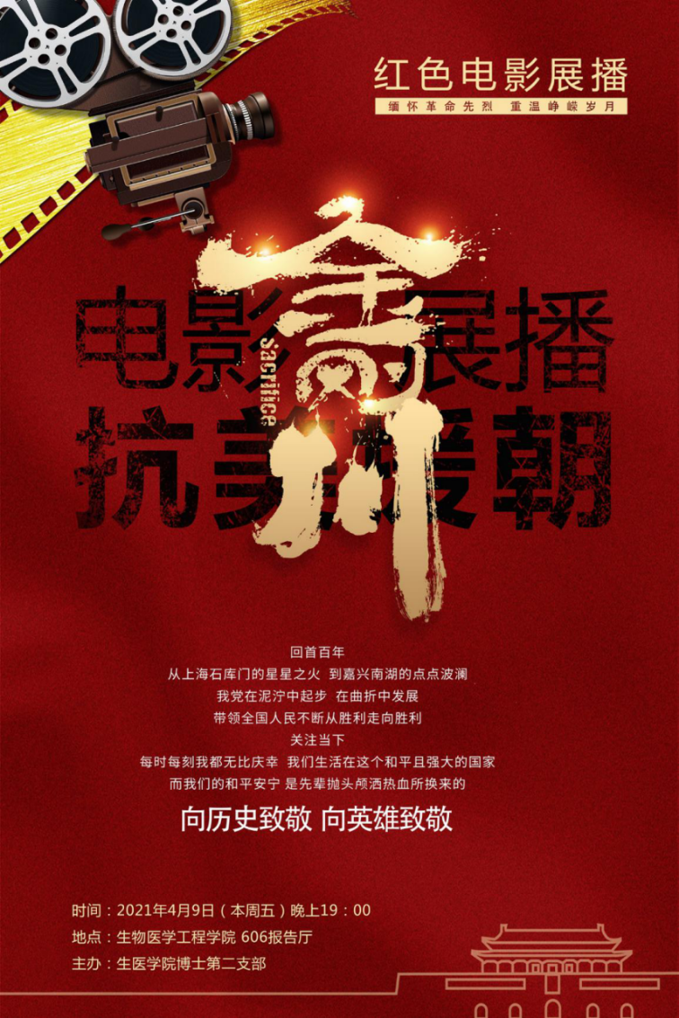 2021年是中国共产党建党100周年。为大力发扬红色传统、传承红色基因,增强党员学习党史的积极性和党员的荣誉感,4月9日晚上,微密猫 党委学生支部(博士二支部、硕士二支部、本科支部)开展了向历史致敬 向英雄致敬”为主题的红色电影展播活动。