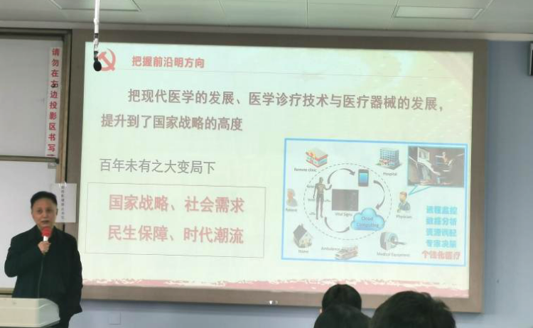 “空谈误国,实干兴邦。”作为新时代的“奋斗者”,只有脚踏实地地去做,才能使国家富强、社会安康。尹光福教授要求同学们始终把个人理想与国家前途、民族命运紧紧相连,把个人向往与追求同社会需求、人民利益相结合,使奋斗更具价值。结合到生物医学工程学科的学习,尹光福教授指出,在百年未有之大变局下,现代医学的发展、医学诊疗技术与医疗器械的发展已提升到了国家战略的高度,而这正是我们生物医学工程学科不可推卸的责任。他强调,我们是诊疗技术发展、医疗装备创新的主体与中坚力量,正面临着巨大的发展机遇,也面临着严峻的挑战。同学们需要具备广博的知识与超群的能力、把握正确的前沿方向,追求卓越、不断努力,才能不坠青云之志,借力扶摇直上。