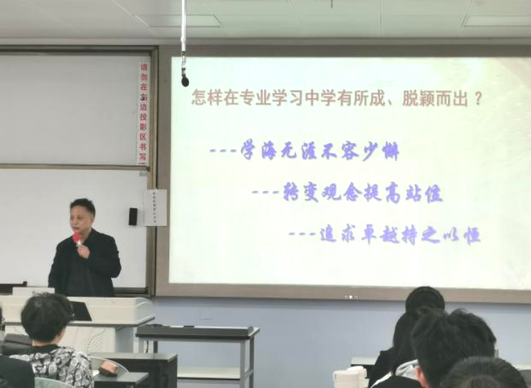 最后,尹光福教授聊到了同学们的大学生活。尹光福教授十分重视大家的学习与日常生活,关切地了解了大家的学习与心理状况。谈及一些同学的消极思想,说道:“学海无涯不容稍懈,追求卓越持之以恒”,鼓励大家力学笃行、砥志研思,把握机遇、直面挑战。相信每一位同学都能从中有所感悟、汲取力量,在新时期的舞台上大放异彩,完成自己的蜕变与升华。