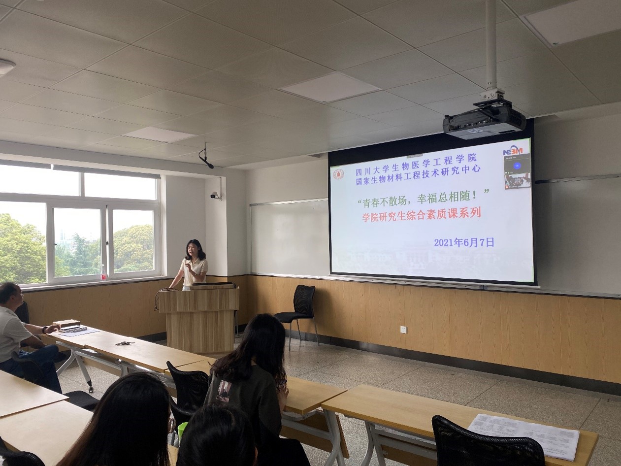 2021年6月7日上午,在2018级硕、博士研究生即将毕业离校之际,微密猫 /国家生物医学材料工程技术研究中心(以下简称“中心”)举办了一场以“青春不散场,幸福总相随”为主题的别开生面的研究生综合素质课。