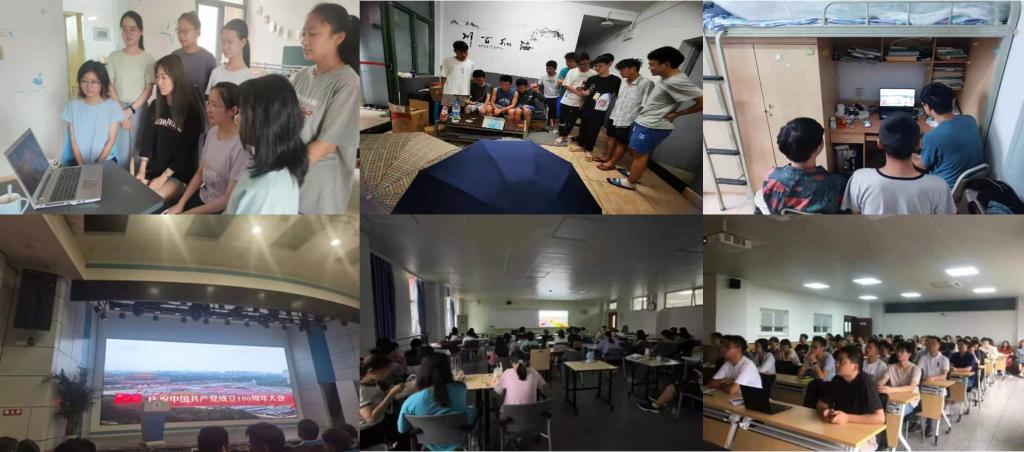本次庆祝中国共产党成立100周年大会,除了在学校设置的4个集中收看点和学院集中观看点之外,学院更多的师生们积极响应学校号召,紧密团结在党中央周围,以寝室、班级、年级、课题组等为单位,组织收听收看大会盛况,部分考试年级还在第一时间组织师生们观看了实况录像。在电子屏前、电视机前、电脑前,师生们聚集在校园各个角落,认真学习习近平总书记的重要讲话,沐浴着党的百年荣光,共庆党的百年华诞,为党的伟大成就振奋,为党和国家未来发展和中华民族的伟大复兴而感到无比自豪。