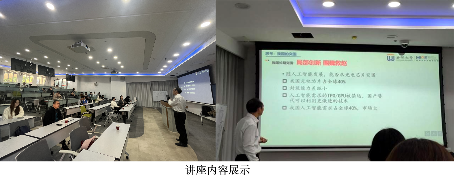望江校区基础教学楼C103迎来了一场关于芯片生产技术的学术盛宴。本次讲座由西湖大学芯片数字化生产技术研究中心主任、西湖大学光电研究院副院长李西军教授主讲,主题为“芯片生产技术:过去、现在和未来的几点思考”。