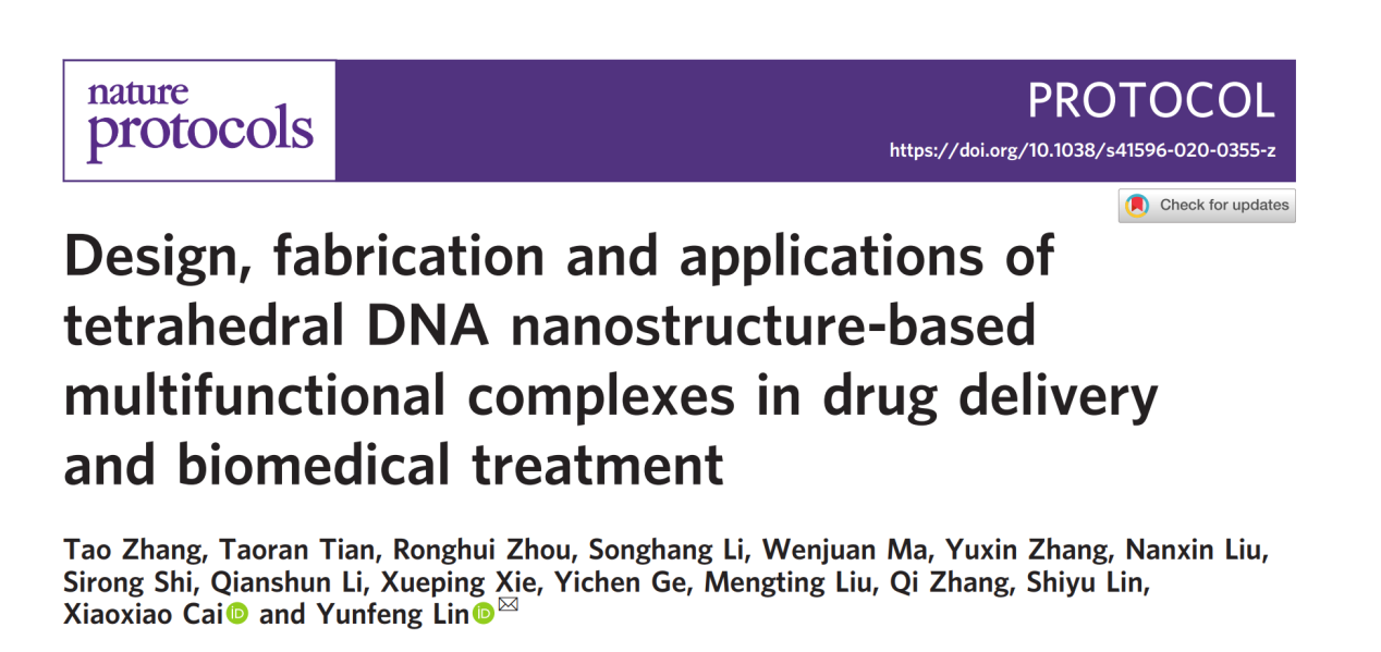 的林云锋教授团队,在国际前沿期刊《Nature Protocols》上发表了题为“Design, fabrication and applications of tetrahedral DNA nanostructure-based multifunctional complexes in drug delivery and biomedical treatment”的论文。微密猫