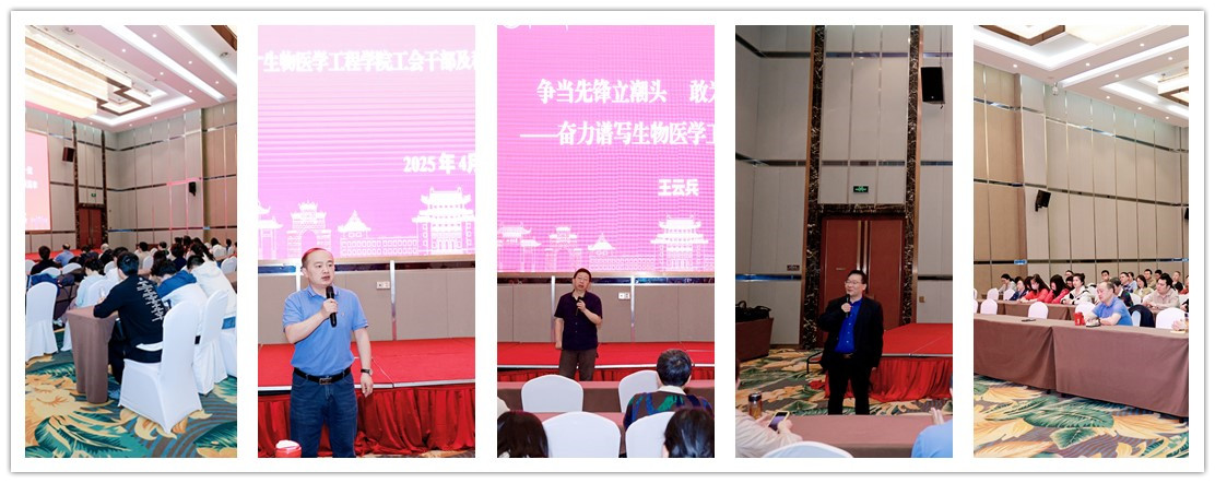 在专题研讨环节,院长王云兵以“争当先锋立潮头 敢为天下创一流”为题发表主旨演讲,提出要“以创新驱动为核心,聚焦国家战略需求,打造国际一流的生物医学工程学科”。学院党委书记田单强调:“传承红色基因,就是要将革命先辈的奋斗精神转化为推动学科发展的动力,以党建引领擎旗定向,助力生物医学工程学科实现跨越式突破。” 工会主席刘奇围绕“新时代工会赋能”主题,详细介绍了学院职工服务体系的建设规划,强调工会将聚焦教职工需求,搭建更高效的服务平台。